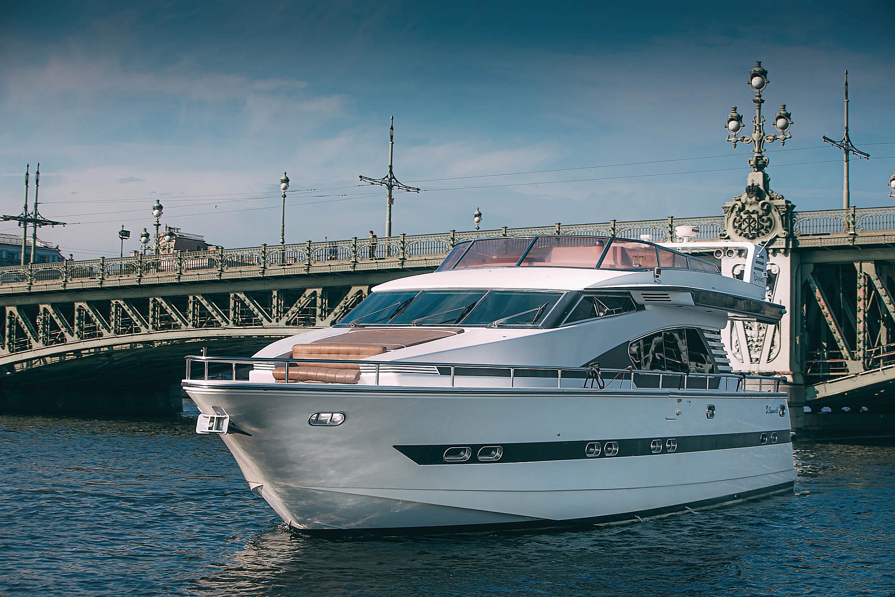 Каждая деталь на борту пропитана изысканностью: отделка из благородного дерева, просторный флайбридж и уютный салон с мягкими диванами и стильными столиками. Для вашего удобства на борту предусмотрена кухня с современной техникой, качественная аудиосистема с Bluetooth, а также два гальюна и уютные теплые пледы для прохладных вечеров.