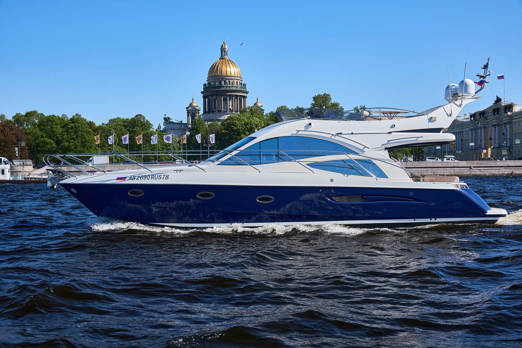 Яхта Galeon 440 — это роскошный выбор для тех, кто хочет насладиться прогулкой по Неве и каналам Санкт-Петербурга с максимальным комфортом.