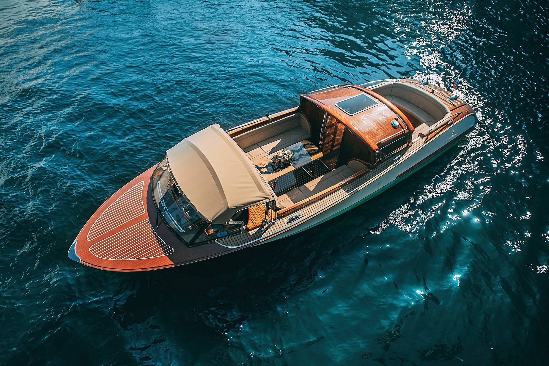 Добро пожаловать на борт катера «Модена», где каждый момент превращается в незабываемое впечатление! С дизайнерским интерьером и кормой из благородного дерева, этот стильный катер сочетает в себе комфорт и элегантность. Открытая площадка и крытая каюта обеспечивают возможность наслаждаться окружающими пейзажами в любую погоду, а теплые пледы и одеяла обеспечат уют в прохладные вечера.