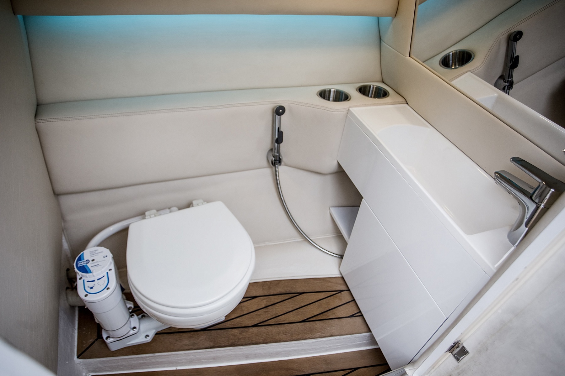 Для удобства гостей катер оборудован уборной, на палубе от непогоды вас защитит тент, а в прохладный вечер вы сможете согреться благодаря уютным пледам.
