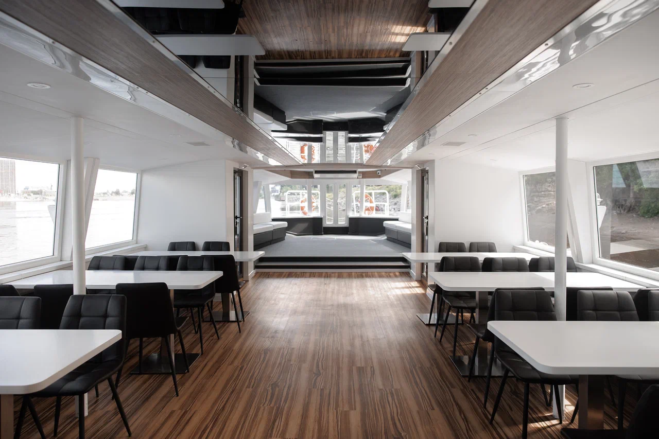 Двухпалубный теплоход «Москва-212» (проект 2024 года) вмещает до 120 человек и представляет собой идеальное сочетание современного дизайна и комфорта. Он оснащен закрытым салоном с баром и комфортной мебелью, а также открытой палубой, которая идеально подходит для лаунж-зоны.